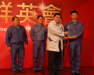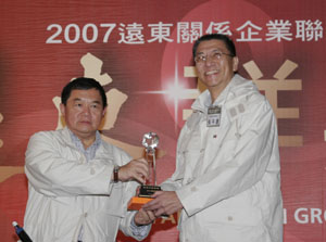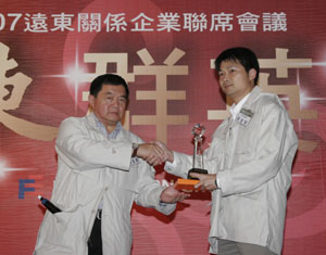 ※亚东工业苏州公司由张总经理平康(右)代表接受徐董事长旭东(左)颁奖。