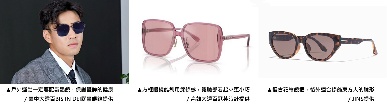 湯姆克魯斯一戴上Ray Ban,帥氣的飛官形象立即擄獲無數粉絲的心。墨鏡能塑造個人造型,展現獨特品味,擁有多支太陽眼鏡已成常態,尤其在春末夏初季節變化之際,更少不了這個時尚配件來遮擋豔陽、保護雙眸。除了阻擋紫外線,今年春夏的墨鏡也充滿飾品華麗、休閒運動風…等特色,本期「流行網」提供實用技巧,助您找到合適的太陽眼鏡,搭配出酷炫新貌。