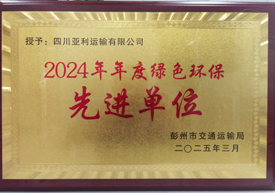 四川亞利運輸榮獲「2024年度綠色環保先進單位」
