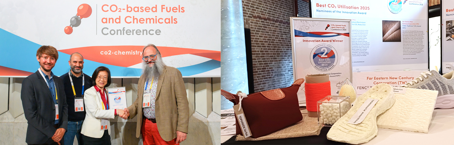 遠東新世紀4月29日以突破性的二氧化碳(CO₂)基非異氰酸酯聚氨酯技術(FENC® TopGreen® AirTek PU),在德國科隆舉行的「2025年CO₂利用創新獎(Innovation Award “Best CO2 Utilisation 2025”)」中,獲德國權威研究機構nova-Institute頒發第二名獎項,並成為該獎項設立以來,第一家獲選的亞洲企業。