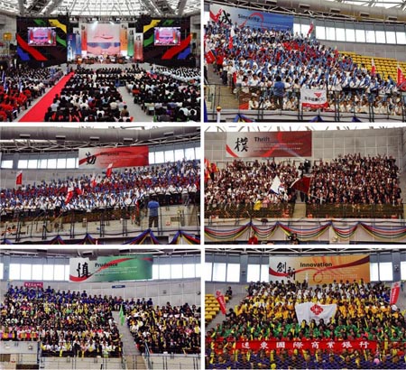 穿過「時光走廊」,進入今天的主會場,舞台上分別以五種不同色調彰顯「誠、勤、樸、慎、創新」等五大立業精神,就連座位的安排也和這五大色調相呼應,氣勢磅礡。正式開場之前,除了徐董事長旭東的談話影片、關係企業長官的祝賀影片之外,主辦單位也準備了由遠傳電信同仁所組成的BOBO樂團演出,以及即將在各大電視台上檔的「攜手串連,共創美好未來」集團形象廣告片,讓同仁先睹為快。