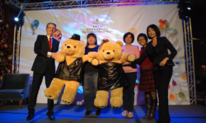 另外,臺南遠東飯店特別訂製了高達140公分,呼應跨年搖滾派對的搖滾泰迪熊一對,在晚會中由充滿愛心的林媽媽與林小姐母女檔認購,義賣金額共二十五萬元也捐予臺南市家扶中心,藉此拋磚引玉,邀請賓客與社會大眾,一同將愛心傳遞給需要的人們。